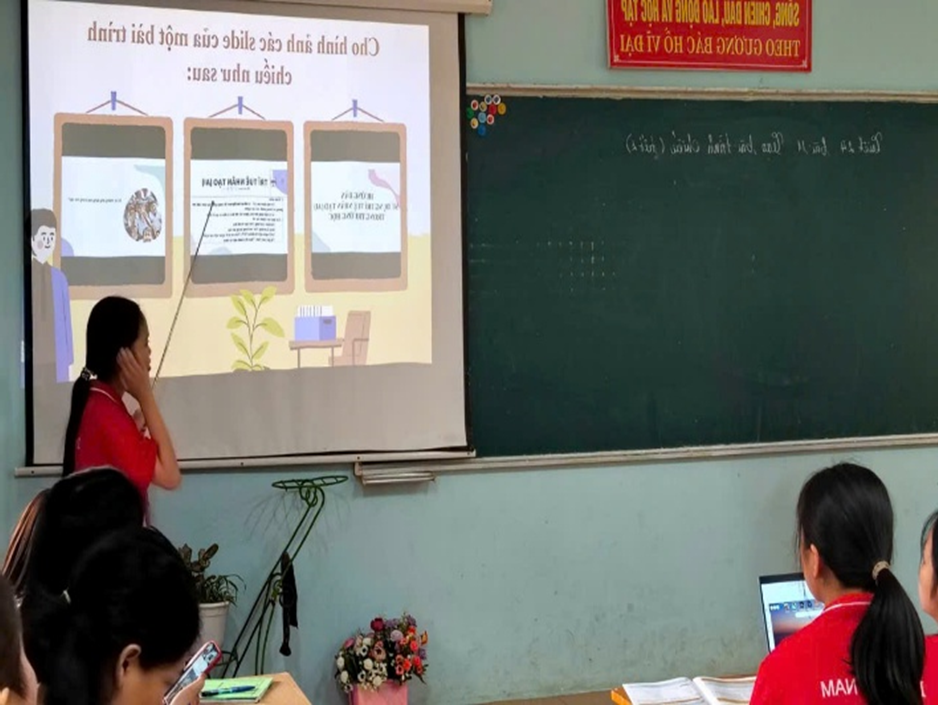 Tiết dạy của tổ Khoa học Tự nhiên do cô giáo Nhâm Thị Phương Thảo thực hiện như một làn gió mới, khi công nghệ trí tuệ nhân tạo (AI) được vận dụng linh hoạt, tinh tế vào từng hoạt động học tập. Từ ChatGPT đến Canva, bài giảng không còn là những trang kiến thức khô khan mà trở thành hành trình khám phá sống động. Học sinh được hóa thân thành những “người sáng tạo”, tự tay thiết kế sản phẩm, tìm hiểu về Lễ hội Hoa Ban – nét đẹp văn hóa đặc trưng của núi rừng Tây Bắc. Qua đó, tri thức được khơi nguồn, đam mê được đánh thức, năng lực được hình thành một cách tự nhiên và bền vững.